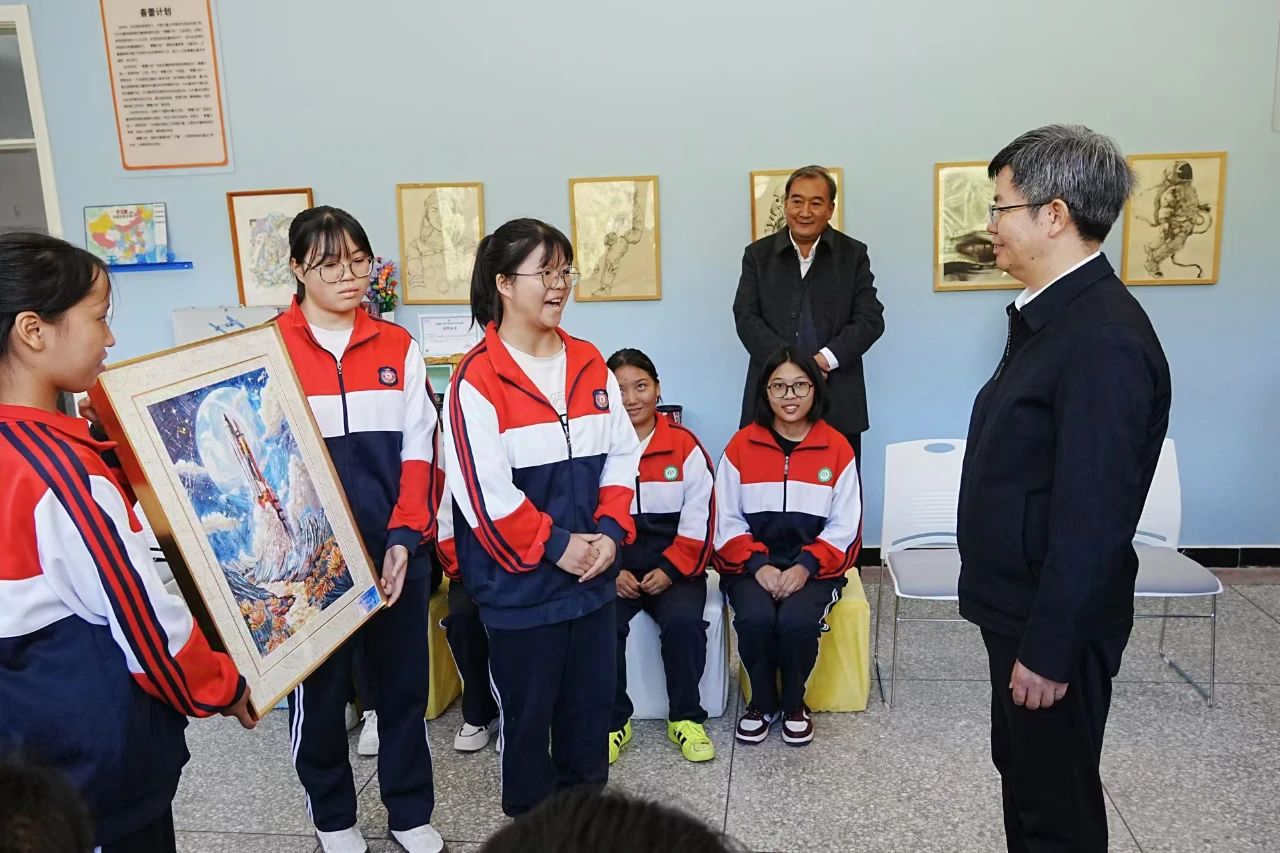 “春蕾計劃助學(xué)金給我的家庭緩解了壓力,今年夏天還有幸去了北京參加研學(xué)”,“在研學(xué)中了解了導(dǎo)彈和航天器的發(fā)展,航天人自強(qiáng)不息、迎難而上的精神讓我印象深刻,這給我高三的學(xué)習(xí)生活帶來力量”……在航天·筑夢女童成長空間站,春蕾女童分享了自己的心得和感悟,并將代表自己心意與祝福的航天主題繪畫作品贈送給航天科工。