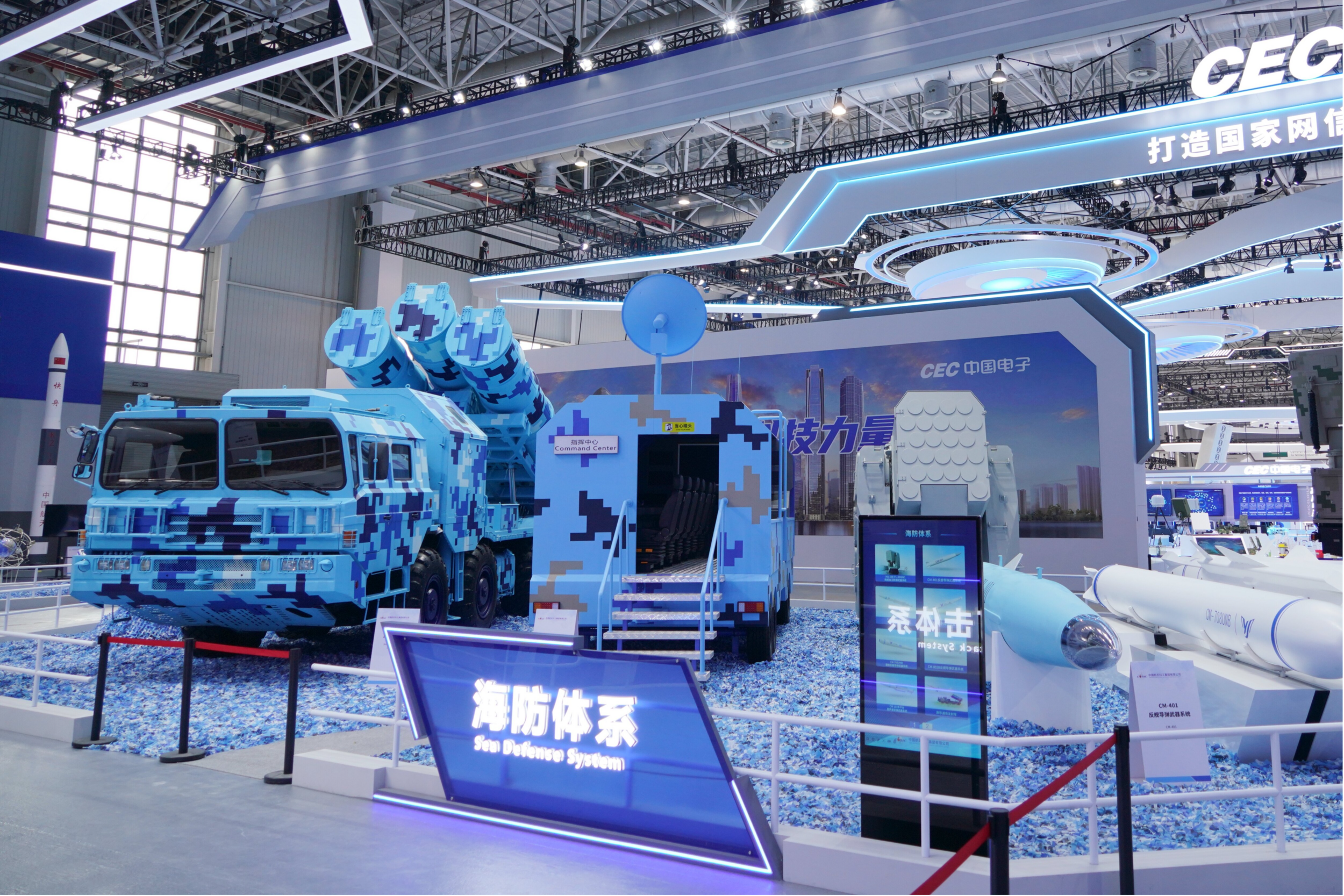 在中國航天科工集團有限公司防空體系展區,HQ-9BE遠程防空武器系統、FD-2000A中遠程防空武器系統、FK-3中遠程防空武器系統、HQ-17AE近程防空武器系統等“明星裝備”煥新亮相。