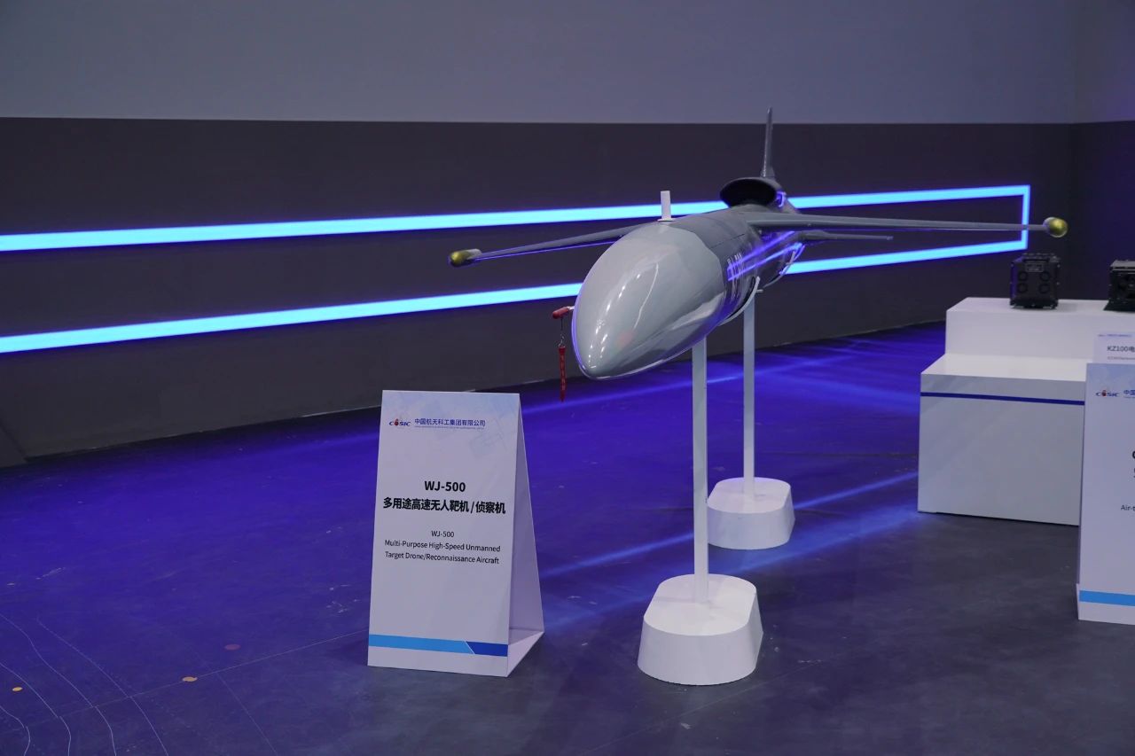 WJ-500無人機采用小型渦噴發動機作為動力裝置,具有作戰部署靈活、高通用性、使用維護簡便等顯著特點,可搭載光電偵察、合成孔徑雷達等多種設備執行區域偵察、目標指示和毀傷效果評估等作戰任務。