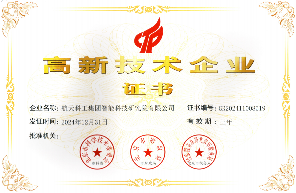 近日,航天智能院順利通過了“國家級高新技術企業”首次認定,獲得高新技術企業證書,標志著航天智能院科技創新、知識產權、科技產品研發以及產品服務等方面的能力受到認可。