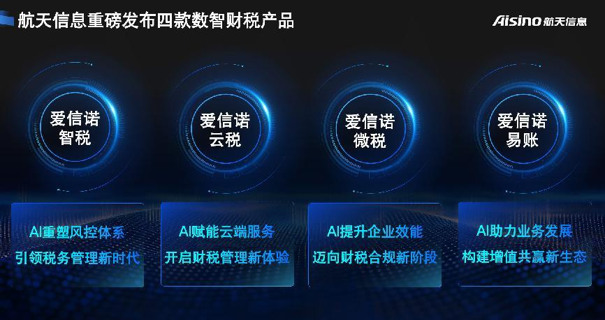 航天信息日前重磅發布AI財稅智能產品矩陣,包括愛信諾智稅、愛信諾云稅、愛信諾微稅、愛信諾易賬四大產品,精準錨定集團型企業、大中型企業、小微企業及代賬機構的差異化需求,覆蓋各類企業財稅管理全生命周期,構建起從基礎記賬到戰略決策的完整智能財稅生態,助力企業提升合規經營和風險防控水平,加快推進穩健發展,引領AI財稅產業生態升級。