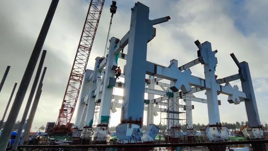 “一號(hào)發(fā)射工位預(yù)埋鋼柱腳的軸線(xiàn)定位精度要求為1mm,這樣的安裝精度要求遠(yuǎn)高于一般民用土建工程施工規(guī)范要求。”航天設(shè)計(jì)一號(hào)發(fā)射工位項(xiàng)目負(fù)責(zé)人汲生偉介紹。一號(hào)工位發(fā)射塔架是整個(gè)塔架的根基,其基礎(chǔ)施工要求一體化、一次性整體澆筑,土建安裝精度遠(yuǎn)小于規(guī)范要求的毫米級(jí)標(biāo)準(zhǔn)值。塔架建設(shè)還需要考慮防火、防腐、防銹的三防要求,在海邊高鹽霧環(huán)境下實(shí)現(xiàn)快速恢復(fù)、高質(zhì)量發(fā)射。