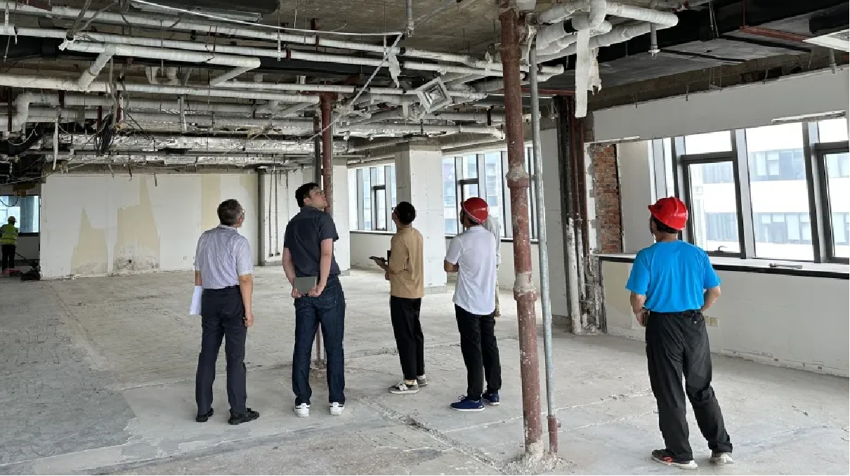 改造項目不是推倒重來那么簡單,需要全面分析原有房屋各方面構造,針對需要改造的地方設計出相應改造方案。設計團隊只能按照原竣工圖紙,先一步開展設計工作。在進行清退工作的半個月內,設計團隊多次到現場核查對比拆除過程中逐漸恢復原貌的建筑與原竣工圖的異同,由于20多年間歷經多次改造,原有的建筑資料與實際情況存在很大差異,水電管線管網也發生較大變化。大家將與原竣工圖不一致的地方拍照留影、記錄整理,詳細分析建筑現狀條件、構造做法、機電管網路由等,確保每一個細節都不被忽視。