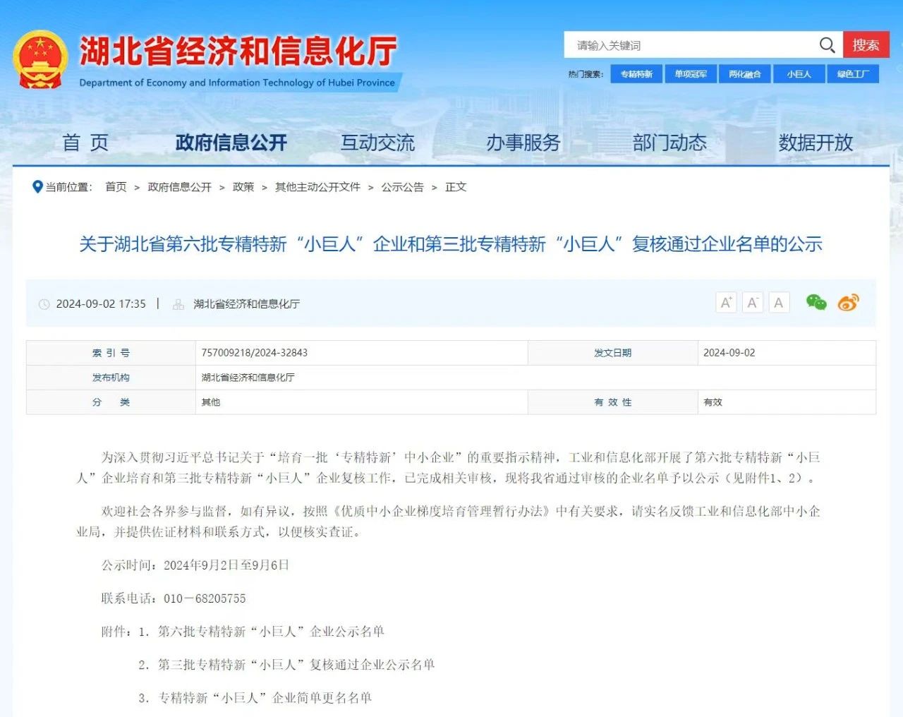 9月2日,第六批國家級專精特新“小巨人”企業名單正式公示,航天科工九院火箭公司成功入選,標志著公司獲批首個綜合性國家級榮譽稱號。