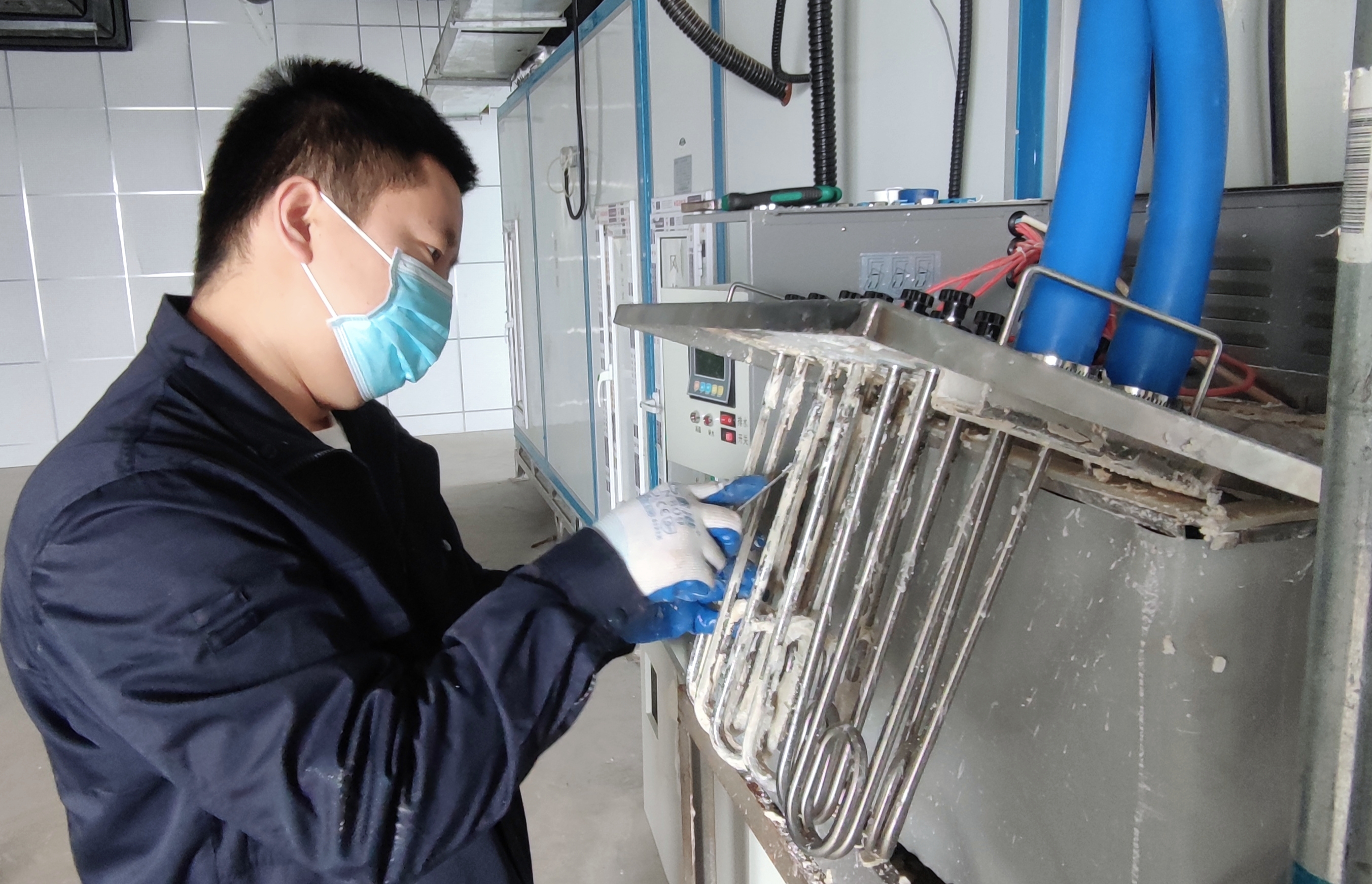 在生產基地,車間職工積極克服作業空間狹窄等不利條件,高質高效地做好空調機組、供暖設備定期巡視檢查、維護保養工作,切實優化送風供暖效果。