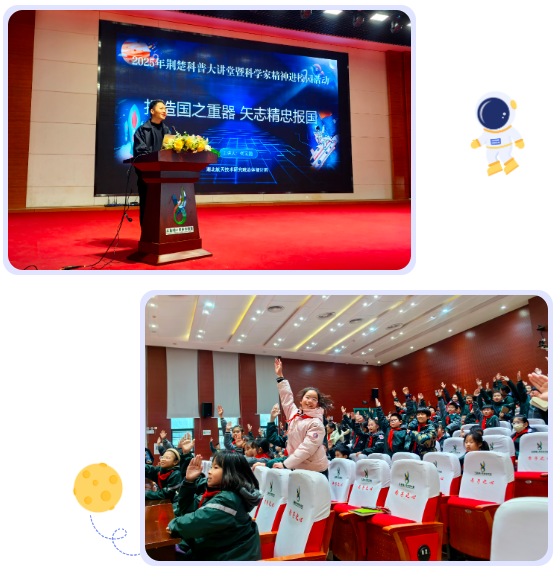 “快舟青年科普志愿服務隊走進武漢常青樹實驗學校(三店校區),為200余名八年級學生送去航天知識課。火箭公司志愿者以中國夢 航天夢 快舟夢為主題,從人類探索太空歷史引入,將航天產品應用與空間望遠鏡、導航軟件、衛星電話等生活常見物品關聯,拉近航天知識與學生的距離。
