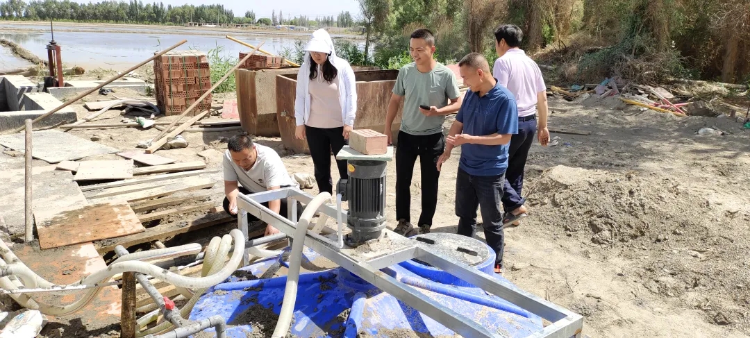 兩小時(shí)后,當(dāng)最后一塊冰雹云撤出天際,大家紛紛下車。“我們得馬上去幫忙,快!”李露林說道。她帶著團(tuán)隊(duì)成員迅速趕到項(xiàng)目地,李露林向項(xiàng)目負(fù)責(zé)人了解清楚了災(zāi)后自救措施后,馬上開始忙活起來——在雨后的田野里檢查水肥一體化智能灌溉系統(tǒng),穿梭在各連隊(duì)的田間地頭以及泵房之間,仔細(xì)查看、精心維護(hù)每一個(gè)環(huán)節(jié)、每一個(gè)接口、每一段管道,排查系統(tǒng)可能出現(xiàn)的凍裂、堵塞等等故障隱患,迅速解決發(fā)現(xiàn)的問題,確保設(shè)備能正常運(yùn)轉(zhuǎn),為全力保障災(zāi)后幸存的棉花和小麥可以順利獲得所需的水與肥做出最大的努力。同時(shí),她還帶領(lǐng)團(tuán)隊(duì)積極對用戶開展培訓(xùn),在簡陋的培訓(xùn)室里,用通俗易懂的語言講解作物災(zāi)后自救措施及灌溉系統(tǒng)操作要點(diǎn),解答農(nóng)戶們的疑問,幫助他們確保災(zāi)后種苗的存活。