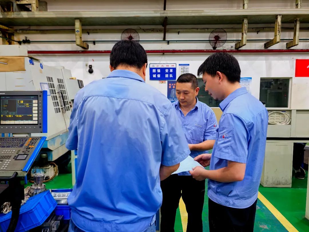 航天群建精密傳動車間齒形班組拿出“拼”的干勁和“搶”的狀態, 全力突擊推進生產進度。班組主要負責車間插齒、滾齒等齒形加工工序,經手的產品零星復雜且試制新品居多,為保障生產任務順利進行,班組通過每日班前會檢點前日工作完成情況、細化當日目標任務,奮力沖刺完成好年度目標任務。