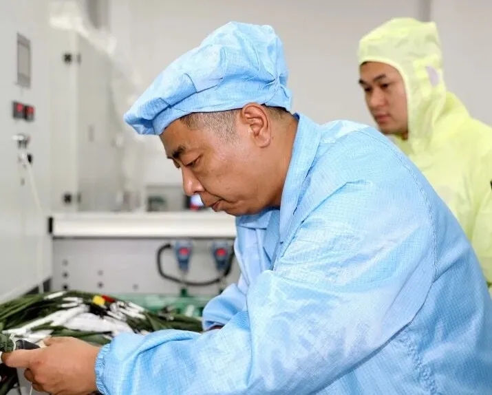 10月11日,險峰公司總裝車間測試工老嚴推著一車產品部件來到試驗中心。在一臺無人值守溫循試驗箱前,他停下腳步,與檢驗員小羅默契配合,迅速接好電纜、啟動設備。隨后,兩人放心離開,安心投入其他工作。