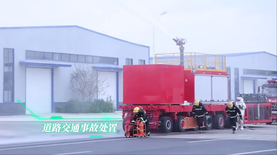 萬(wàn)向無(wú)人消防車由自行式模塊車底盤(pán)和智慧消防滅火模塊組成,采用無(wú)人遙控方式,可實(shí)現(xiàn)多模式靈活轉(zhuǎn)向、整車整升整降等功能,將泡沫混合液精準(zhǔn)噴射到著火點(diǎn),特別適用于大跨度坍塌、密閉等環(huán)境復(fù)雜的高危險(xiǎn)應(yīng)用場(chǎng)景。