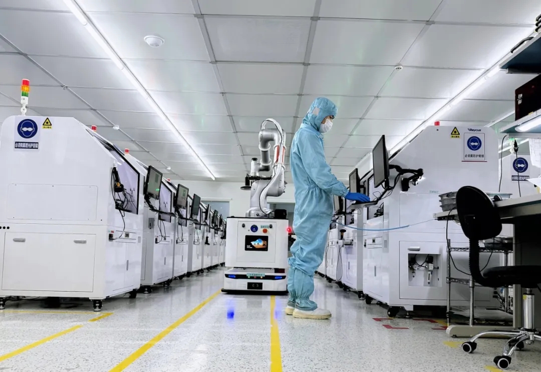 銳科激光智慧光子生產(chǎn)車間,一臺搭載精密機(jī)械臂的自主移動機(jī)器人正沿著預(yù)定路線,緩緩駛向目標(biāo)機(jī)臺。它精準(zhǔn)停靠后,機(jī)械臂隨即探入設(shè)備內(nèi)部,執(zhí)行夾取、移載、掃碼、上料等系列操作,一氣呵成。操作員李工站在調(diào)度屏前,專注地監(jiān)控著實(shí)時(shí)數(shù)據(jù)。
