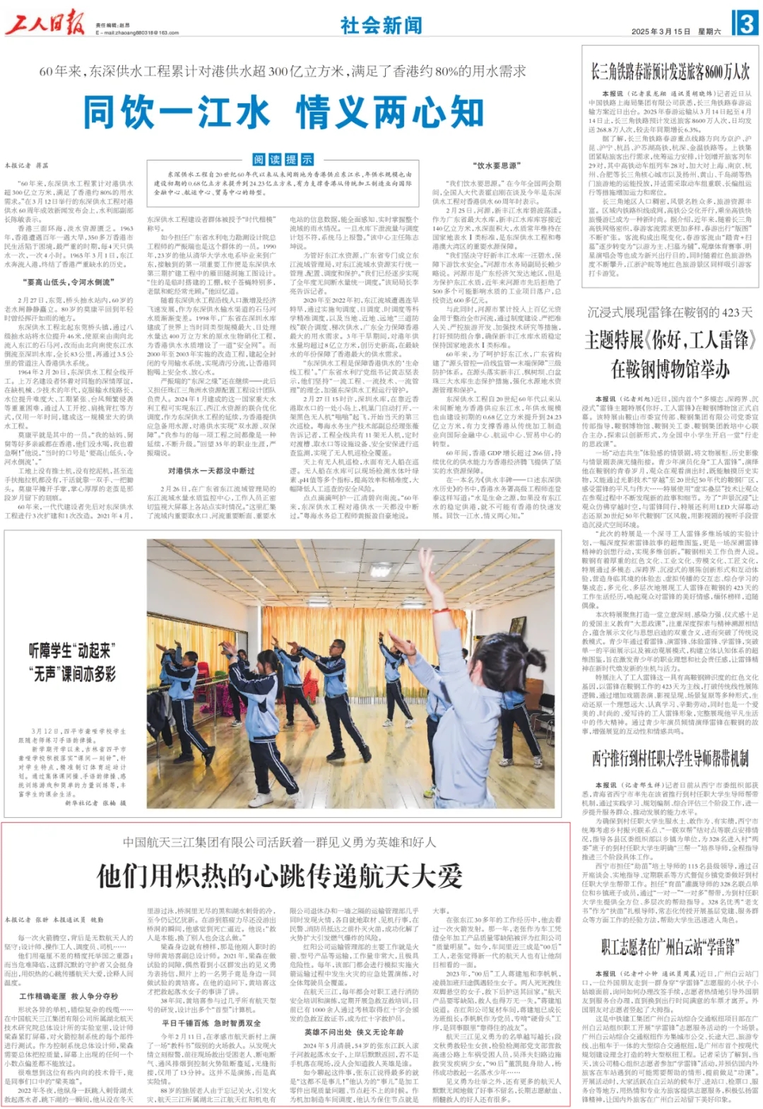 3月15日,《工人日報》三版以他們用熾熱的心跳傳遞航天大愛為題,報道了九院該群體的感人事跡。原文如下: