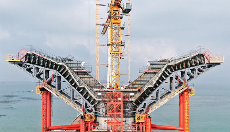 中央企業(yè)把主題教育與貫徹中央重大決策部署結(jié)合起來,切實抓好服務(wù)構(gòu)建新發(fā)展格局戰(zhàn)略任務(wù)。黃茅海跨海通道是繼港珠澳大橋、深中通道之后,粵港澳大灣區(qū)又一跨海通道工程,由保利長大承建的黃茅海大橋中塔于2023年4月18日順利封頂。圖為4月17日,工人在黃茅海跨海通道黃茅海大橋進行墩柱基樁建設(shè)。 新華社記者 鄧華/攝