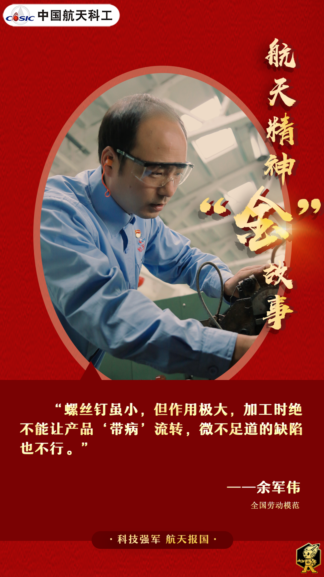 余軍偉的工作,正是送螺絲釘“上太空”。17年前,他只是一名普通的高職學(xué)生,如今已成為航天精工河南公司鐓制領(lǐng)域總制造師,榮膺全國(guó)勞動(dòng)模范,享受?chē)?guó)務(wù)院政府特殊津貼。