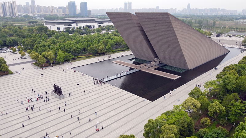 游客在合肥渡江戰役紀念館參觀游覽(2021年5月3日,無人機照片)。新華社記者 周牧 攝