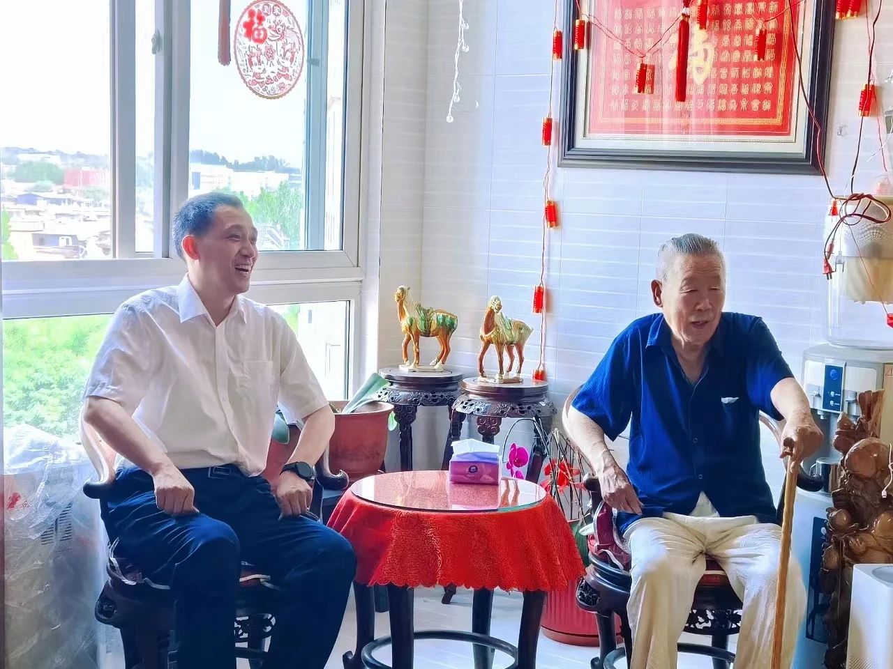 在老黨員家中,院領導與老同志們親切交談,了解他們的身體狀況和生活情況,與他們重溫輝煌黨史和三院院史,追憶攻堅克難的奮斗歷程,感謝他們為飛航事業發展作出的突出貢獻。老黨員們對三院黨委長期以來的關心表示感謝,對院黨委帶領全體干部職工取得的成績感到自豪,并表示今后將在保重身體的同時,繼續發揮好“余熱”,一如既往地關注和支持三院的發展。