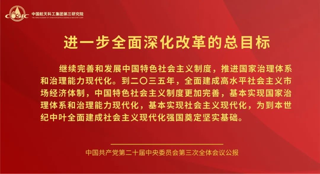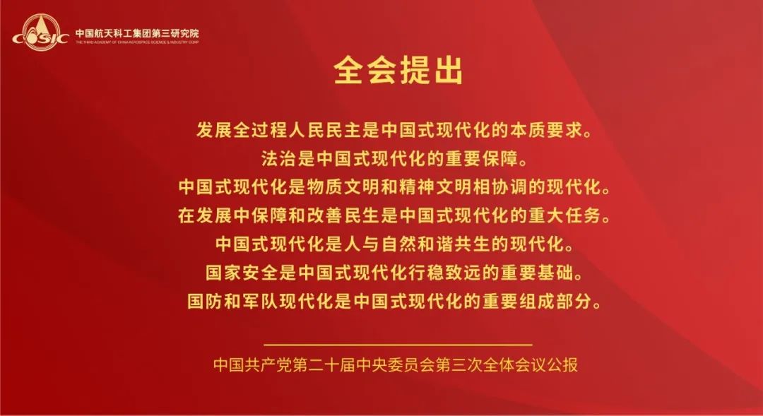 黨的二十屆三中全會,是在以中國式現代化全面推進強國建設、民族復興偉業的關鍵時期召開的一次十分重要的會議。航天三院黨委將學習好宣傳好貫徹好黨的二十屆三中全會精神作為當前和今后一個時期的一項重大政治任務,高度重視,迅速行動,引導三院全體黨員干部職工把思想和行動統一到全會精神上來,把智慧和力量凝聚到落實全會精神和部署上來,聚焦主責主業,履行強軍首責,持續推動飛航事業高質量發展。