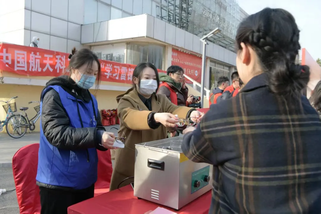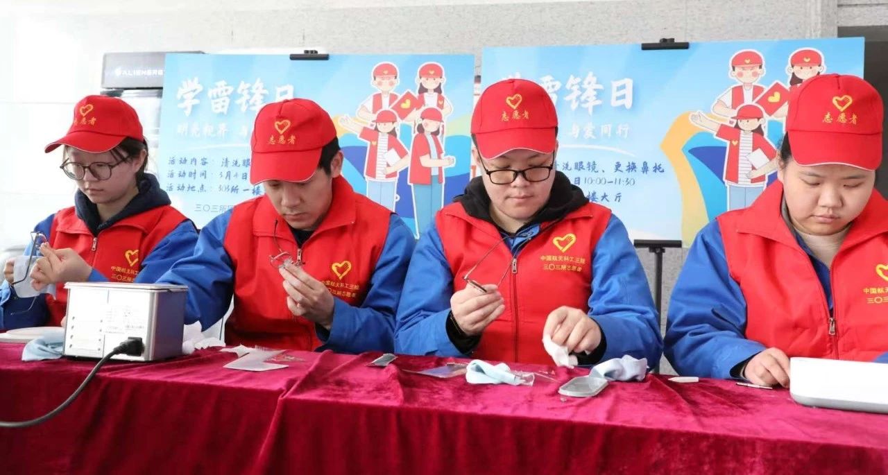 ▲303所團委舉辦了“明亮視界 與愛同行”志愿服務(wù)活動,為所內(nèi)職工提供更換鼻托和超聲波清洗眼鏡服務(wù)。