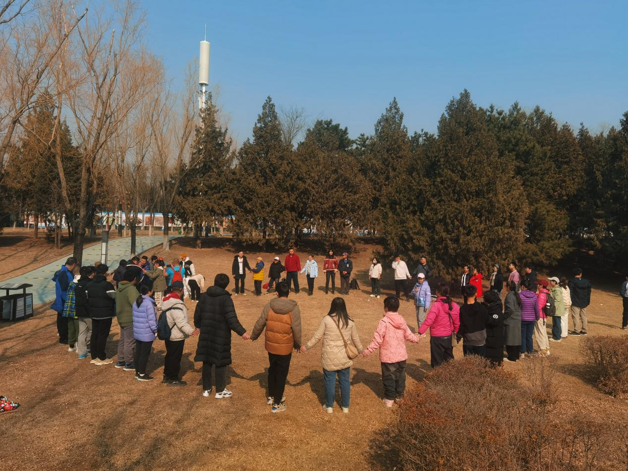 ▲33所、教育中心青年志愿者與“星星的孩子”結(jié)成幫扶對子,共同完成春日徒步和趣味游戲。
