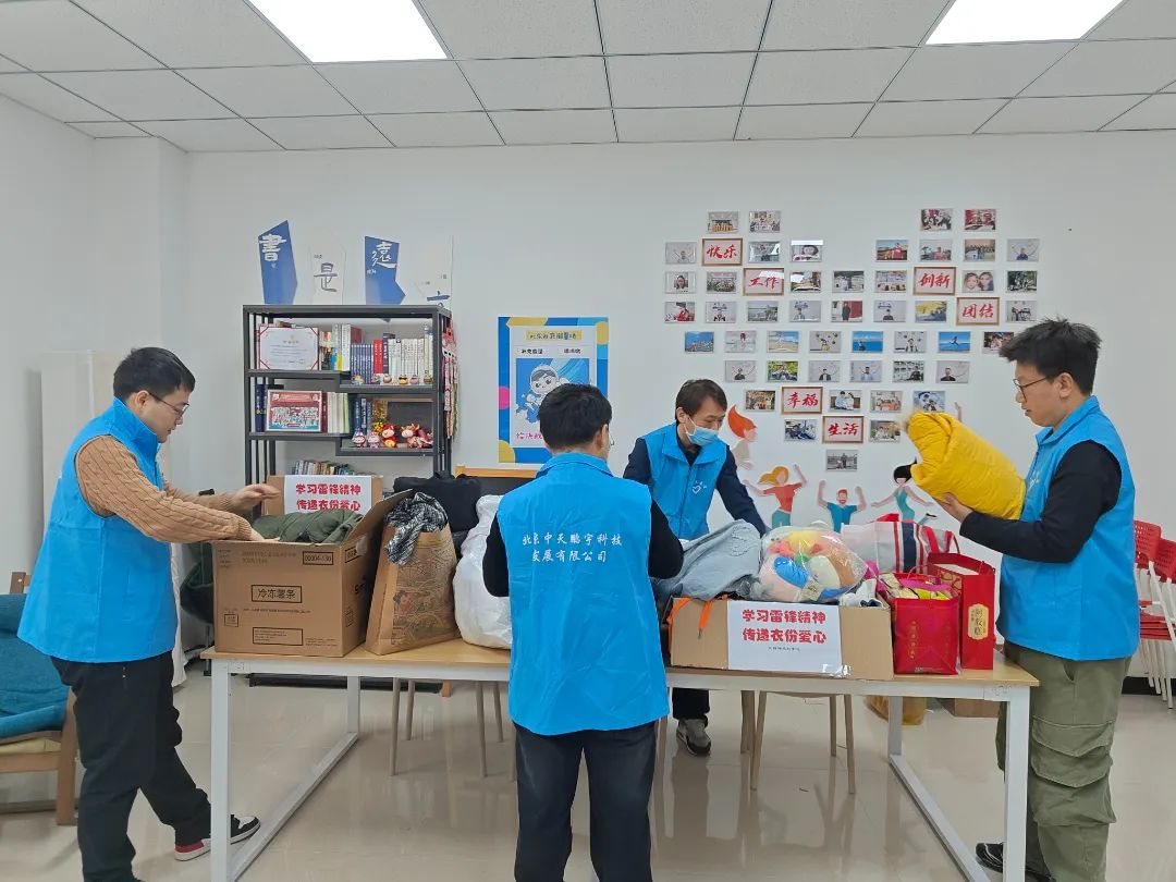 3月3日,二院中天鵬宇公司元器件采購中心青年志愿者們參與中華慈善總會“一張紙獻愛心行動”,開展學雷鋒獻愛心捐衣物活動,推動舊物回收,并將回收衣物捐贈給困難群體。(攝/張賽楠)