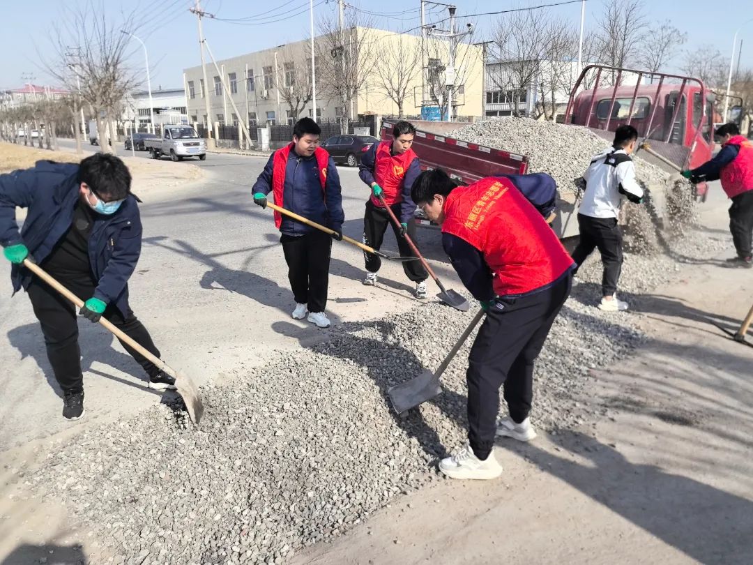 近日,航天精工團委組織團員青年開展志愿鋪路活動。10余名青年志愿者對天津市金橋工業園內坑洼不平的路段展開整修,方便了職工日常通行。(攝/陳星)