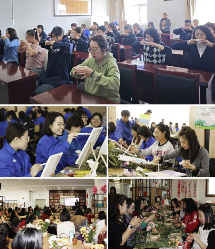 紅崗公司、六院科保、金崗重工的女職工們紛紛走進了花藝、茶藝與繪畫的奇妙世界。各類花卉、張張繪畫、陣陣茶香……在大家的巧手中展現著女性對美的不同詮釋。